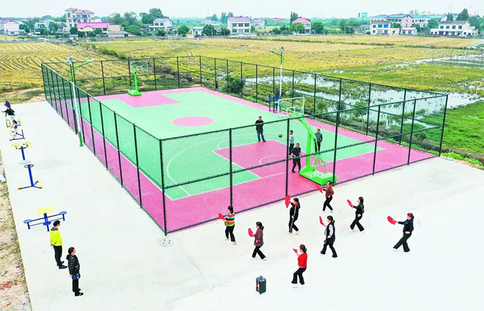 據(jù)六合圍村黨總支副書記李妙介紹,之前村上沒有合適的地方給村民鍛煉,像村上的籃球隊參加望城區(qū)的百村籃球賽都要借場地訓練,很不方便?!艾F(xiàn)在,村里有了自己的場地,大家可以在家門口運動,鍛煉的積極性高了很多。”